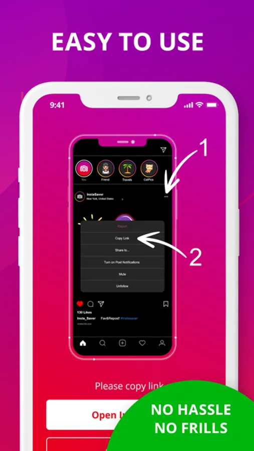 *Click on the “•••” button on top right of the picture/video you want to repost and select “Copy link”