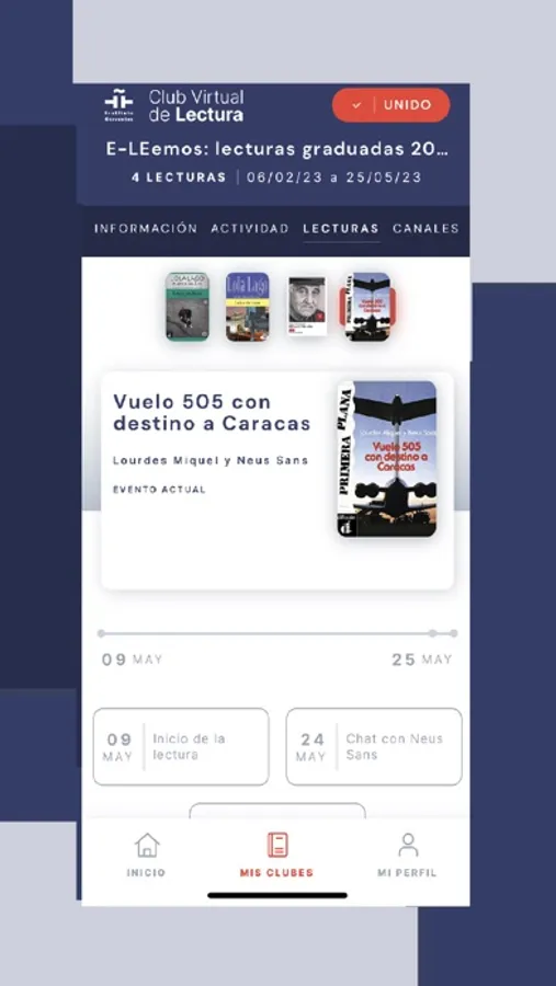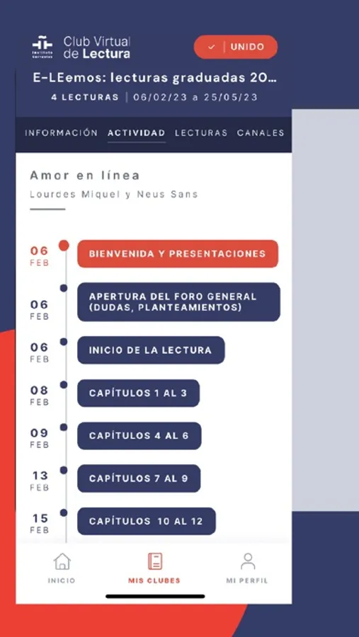 Los debates siguen una programación y cada título es moderado por los autores o por expertos. Los clubes y sus lecturas están interconectados con la colección de libros electrónicos. Las lecturas están siempre disponibles para que se puedan descargar desde la plataforma de libro electrónico o leer desde la aplicación del club virtual.