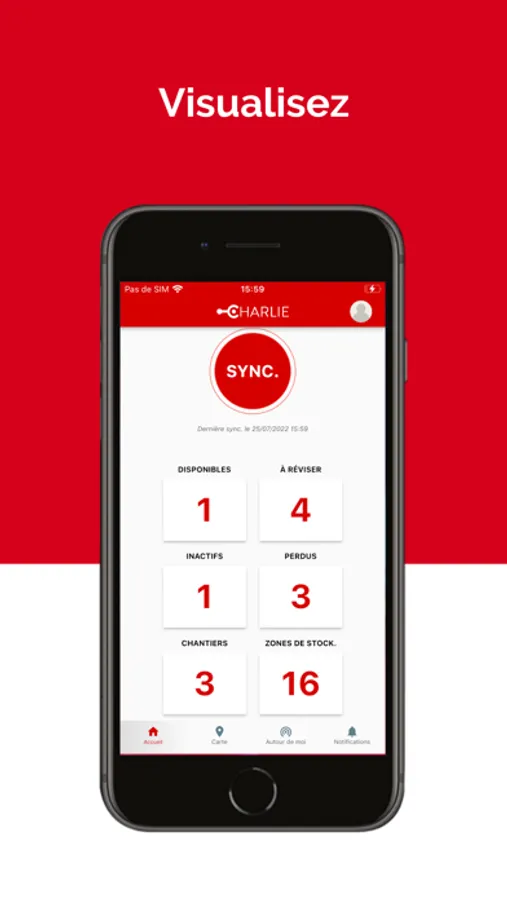 L'application est connectée et intégrée avec le système de traçabilité Charlie et sa plateforme web de gestion. Vous avez ainsi dans votre iphone l'état à un instant t de votre parc pour optimiser la recherche et le contrôle des équipements.