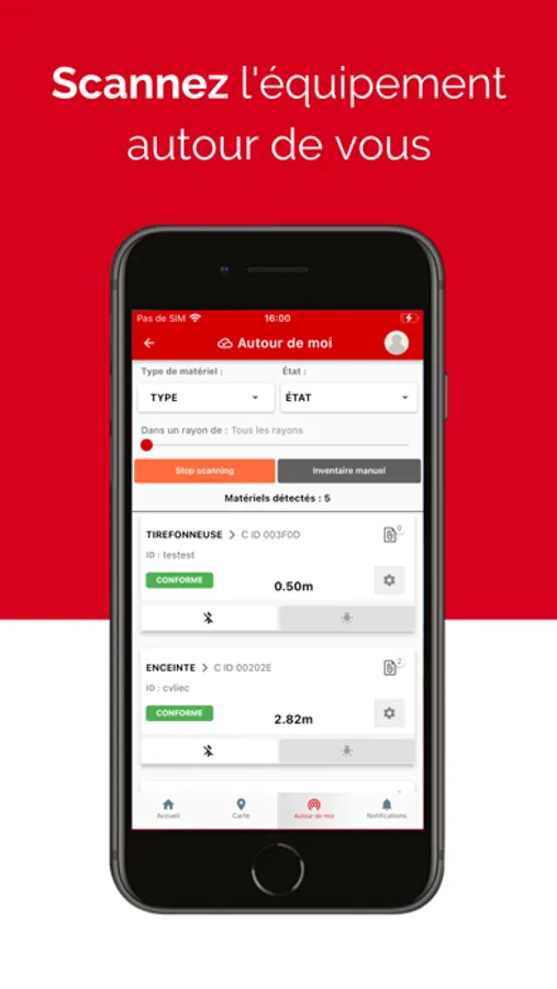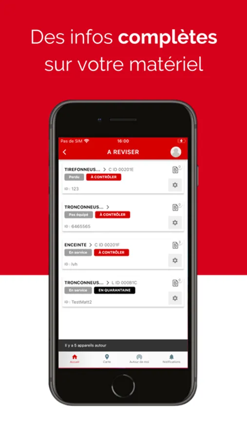 - Système de notifications afin de limiter les pertes, vols, équipements non conformes etc...