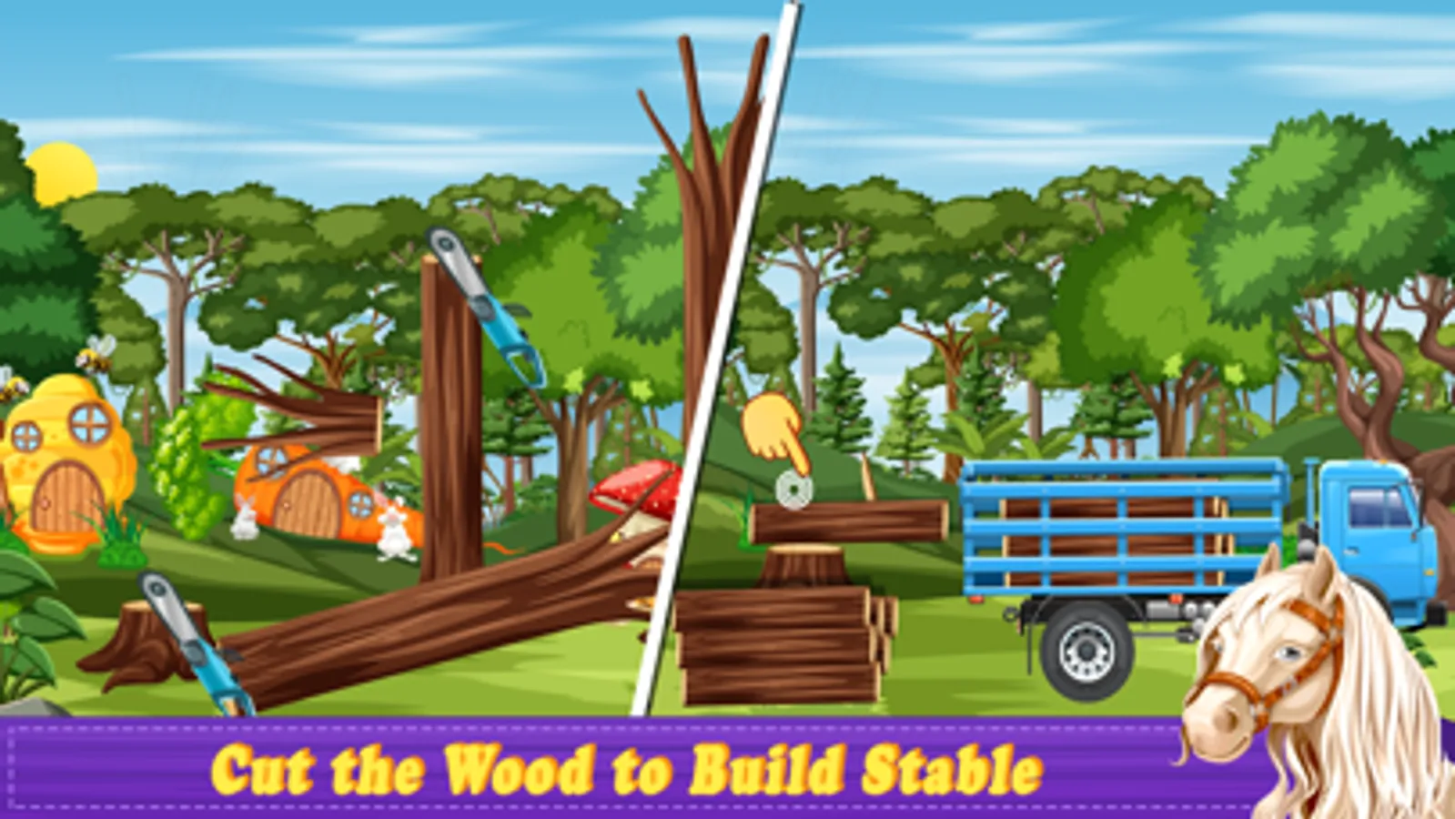 This horse stable construction game brings a lovely storyline and be a crazy little home maker, barn decorator & stable builder. Give it a try and find out all the great horse cart adventures that you are about to go through. You will have the best experience as a caretaker in this fun free fixing game. There are different things which you have to do in this horse simulation game. You'll be able to keep, train & transport all sorts of different horses to Shetland ponies, unicorn and many more. In this magic horse story game you have to cut wood from the forest to design, build & fix it their stable homes, and showing some crafting skills of a lumberjack in this repair games of 2021. Give your horses a bubble bath which helps them to groom, because the dirt that gathered on this skin and make sure he is all cleaned up. So, prepare yourself by horse stable maker for building and architect a horse farm house in construction simulator & horse grooming games.
