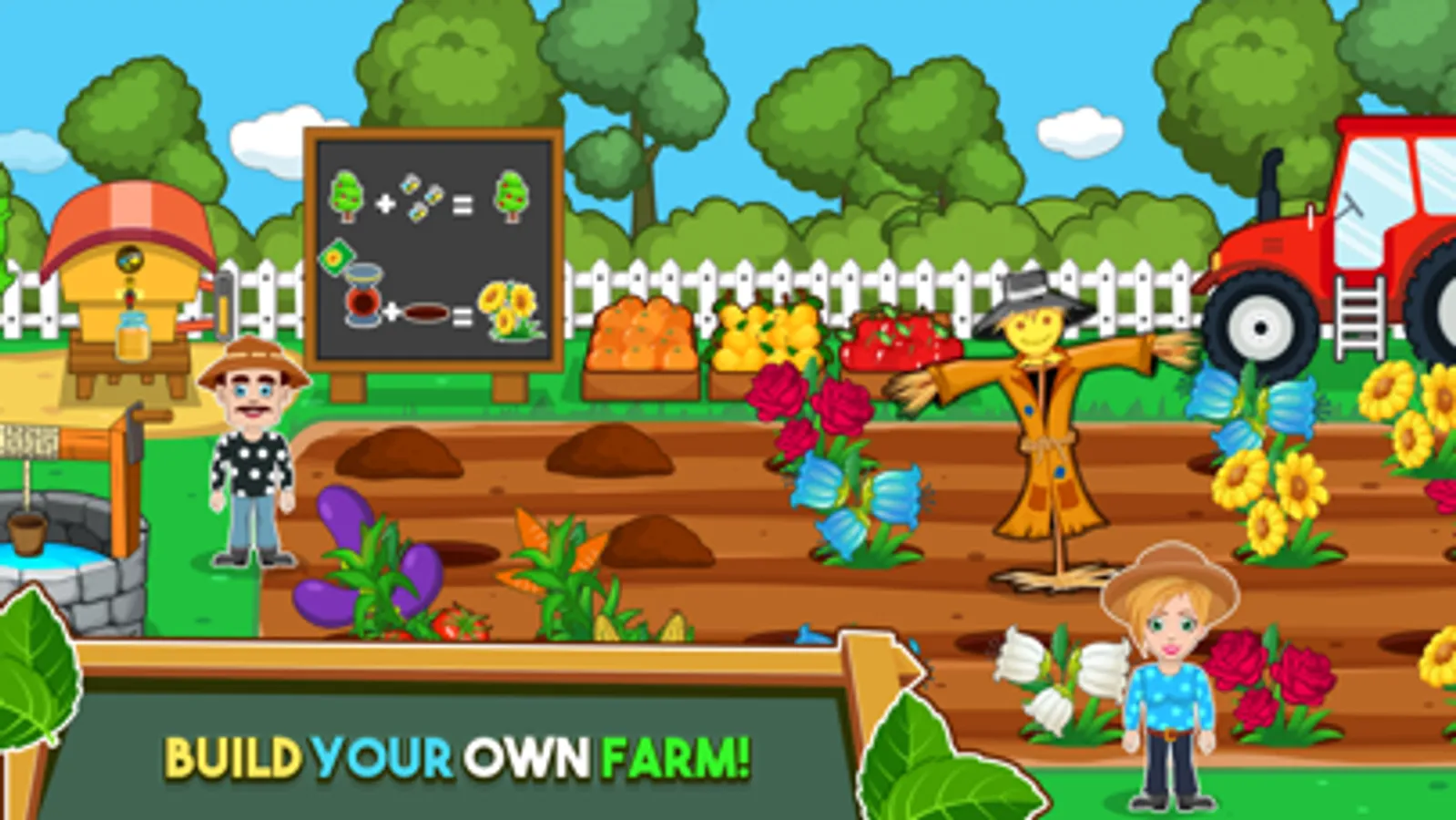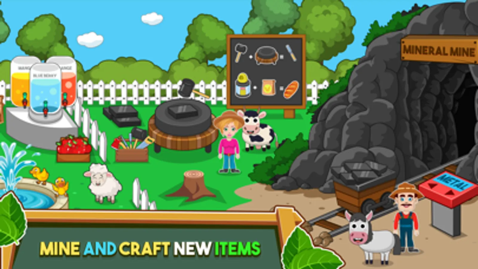 Welcome to the town farming where you can explore, discover & enjoy the farmer lifestyle of farming game. Get ready to become the town farmer of these pretend play games, as you know the harvesting season is going on and you are on vacation. So, let’s perform different activities & enjoy this farm craft. Let’s play town farming and role-playing game. Start harvesting crops, cultivate the land, and take good livestock care, including pretend to play animals like horses, sheep, & cows. Run the farm & collect eggs and sell them to a near small village. Live the peaceful village creative lifestyle of a farmer where you can decorate & build your farmland in farm games. To become a happy farmer, you have to work day & night to grow & cultivate your garden. Time to modernize your farmland and take care of your secret rooms where you have lots of amazing stuff to do & play self-defined gameplay to create your own adventure life story on this game. You can explore horse stable, cow dairy shed, crops fields, and farmhouse areas in these pretend-to-play games.
