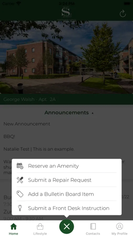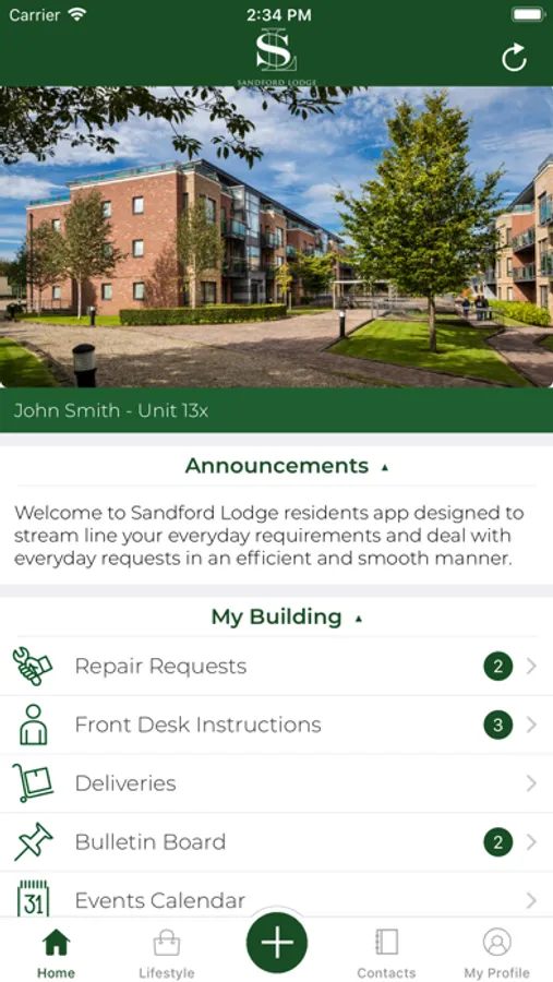 • Receive notifications from concierge regarding upcoming events at Sandford Lodge