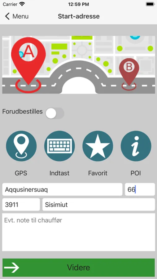 Med Taxa Sisimiuts App kan du bestille din taxi direkte udenom telefonkøen, da App´en selv finder den adresse du er på.