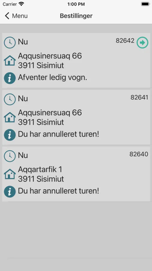 Hvis du vil se din bestilling, skal du trykke på ”Bestillinger”.