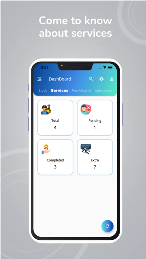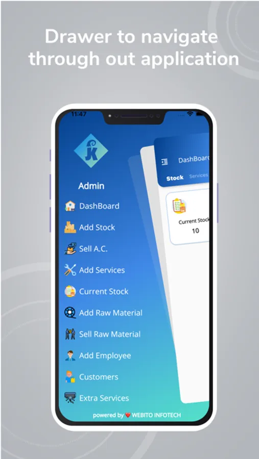 This app manages all your customer details, stock, raw material, employees, service of sold air conditioners, and after completion of service, we get their review and feedback.