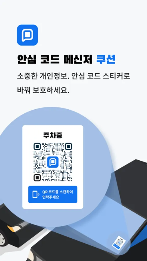 3. 이중 주차를 위해 공개되어 있는 모든 자동차의 개인 전화번호 대신 각 고유의 QR 코드 스티커를 부착하여 개인 정보 노출을 막고, 상대방이 필요한 상황에 QR 코드를 스캔하여 서로의 어떠한 정보 노출없이 차주와 연락을 주고 받습니다.