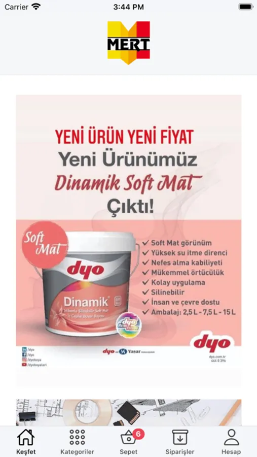 Mert Boya mobil uygulaması, tüm ürünlerimizi içeren sürekli güncel bir katalog barındırmasının yanında ürünleri sepete ekleyip hızlıca sipariş vermenizi sağlayan modern bir arayüze de sahiptir. Ayrıca uygulamamız üzerinden siparişlerinizi takip edebilir ve cari hesap ekstrenizi görüntüleyebilirsiniz.