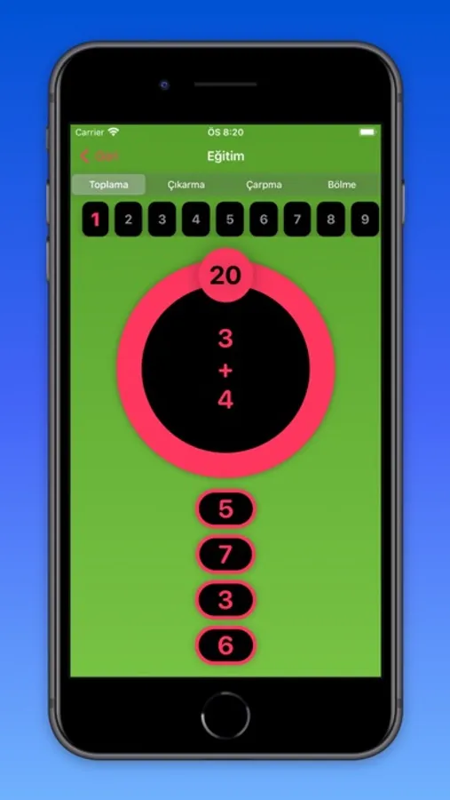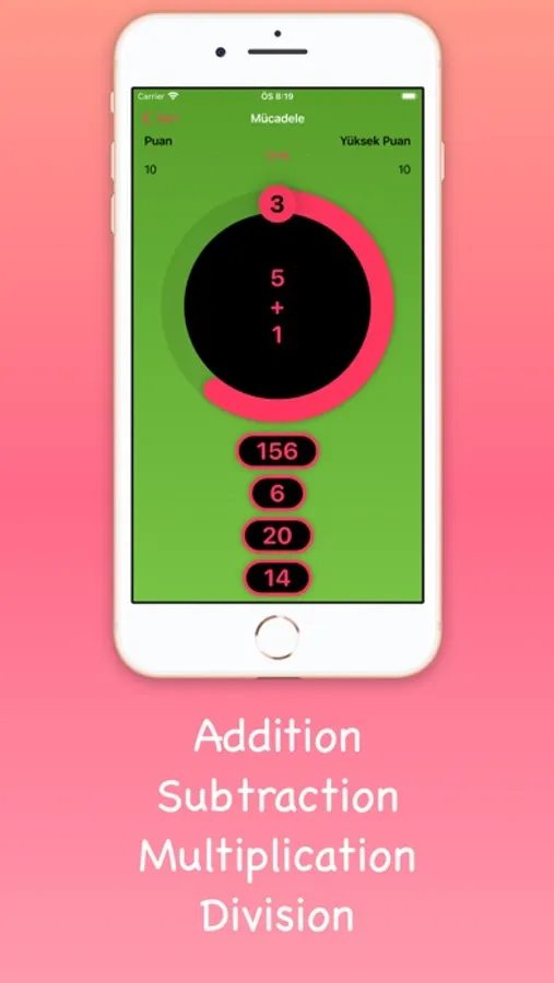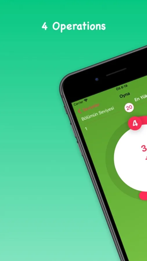 The second mode is on training. In this mode, you can learn or improve 4 operations level by level without time limit.