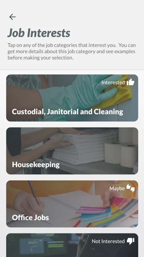 - Engaging questions that help job seekers explore their likes, dislikes, skills - and understand how those translate to real jobs with real wages.
