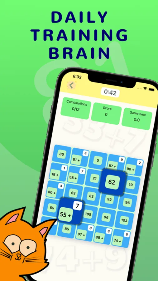 ‘Brain games math’ consists of four different practice training. All training is associated with solving math problems or memorizing combinations. Each training has the ability to modify with varying degrees of difficulty. A timer is set for concentration while exercising on some tasks. Over time, your brain will develop and it will be easier to solve problems each time.