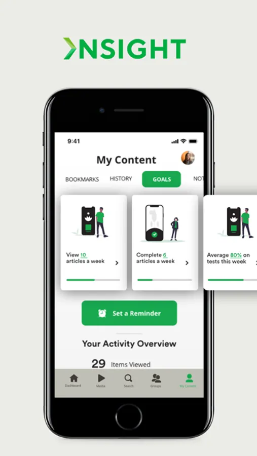Insight for Kelly is built to contain articles, tips, quizzes, courses, audio, and video to help you find the information you need. The built-in recommendation engine will suggest the content most relevant to your interests and past activity. After you’ve checked out your recommendations, you can explore all the content within Insight for Kelly by leveraging tags or searching for something specific. When you find something beneficial, bookmark or annotate the content to help you quickly refer back to it later. To support your learning progress, Insight for Kelly lets you set and track progress on goals and award you badges when you reach key milestones.