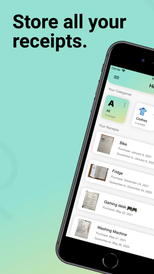 Experience effortless management of your purchases with this application. Store digital copies of your receipts, categorize them based on your preferences, and receive timely reminders. Never miss a warranty expiration again – the application will ensure you stay informed. Simplify your life by keeping track of purchases and warranty periods in one convenient location.