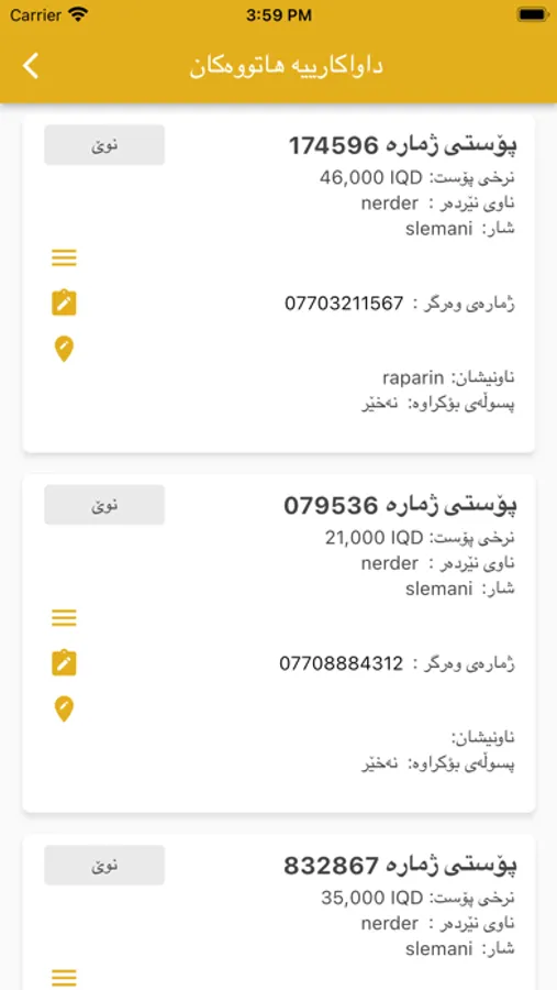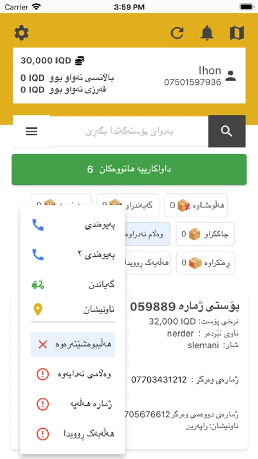 ـ لایەنی نێردەر (فرۆشیار)دەتوانێت ژمارە مۆبایلی وەرگر بگۆڕێت ڕاستەوخۆ شۆفێر ئاگاداری گۆڕانکاری دەبێت