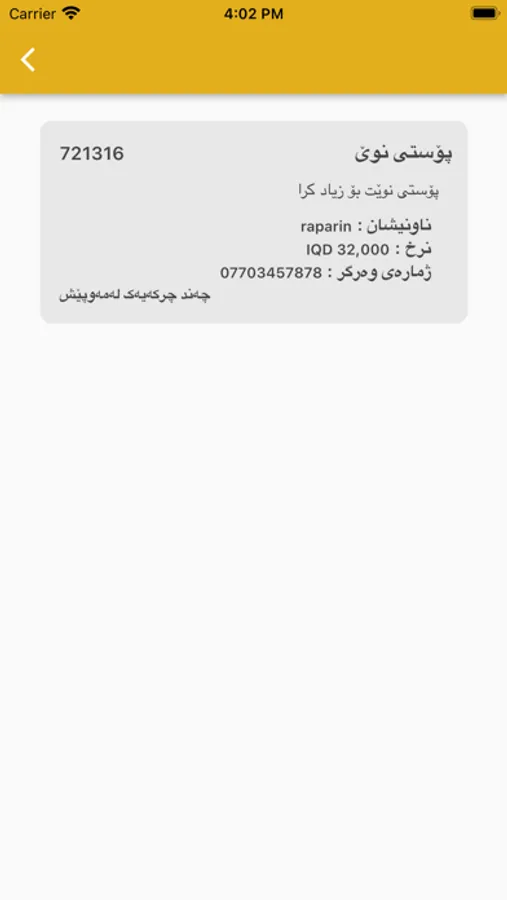 ـ لایەنی وەرگر (کڕیار) لە دوای دابەزاندنی ئەپڵیکەیشنەکە دەتوانێت بە نووسینی ژمارە مۆبایل داخڵی ئەپڵیکەیشنەکە ببێت