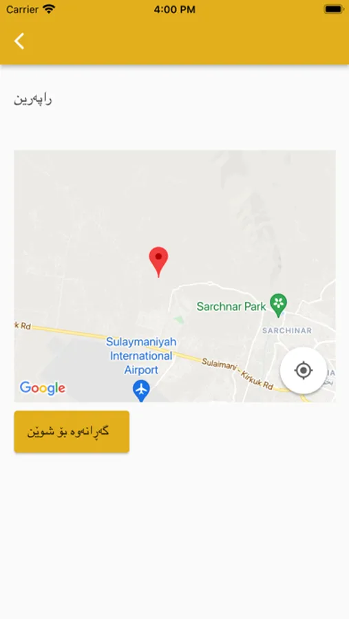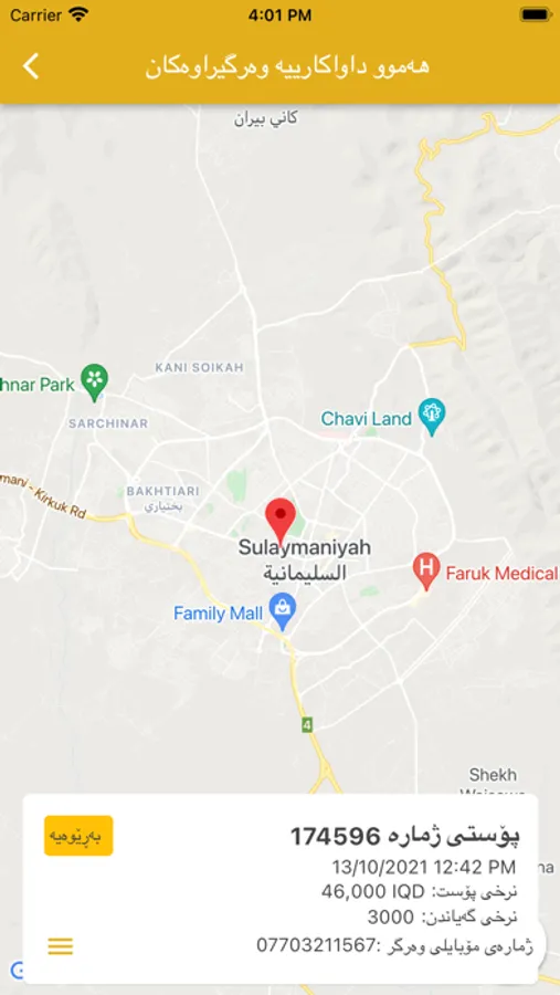 ۳ـ لە چ شوێنێک دەتەوێت پۆستەکە وەربگریت لە شوێنی دیاریکراو داخڵی ئەپڵیکەیشنەکە ببە بۆ دیاری کردنی شوێنی وەرگرتنی پۆست