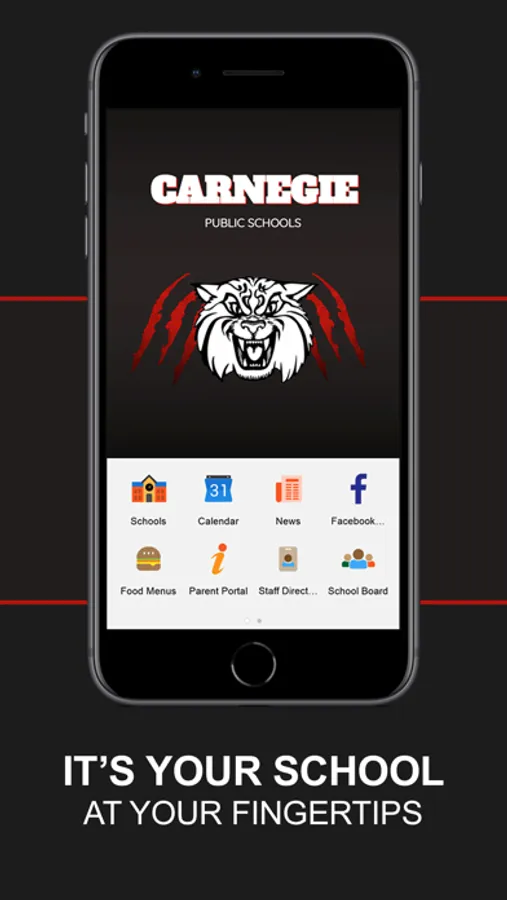 With the Carnegie School District mobile app, your school district comes alive with the touch of a button. Easily navigate through current news and events or check out the latest updates with social media. Quickly retrieve contact information, sporting scores, lunch menus, and more! It’s your school district available at your fingertips.