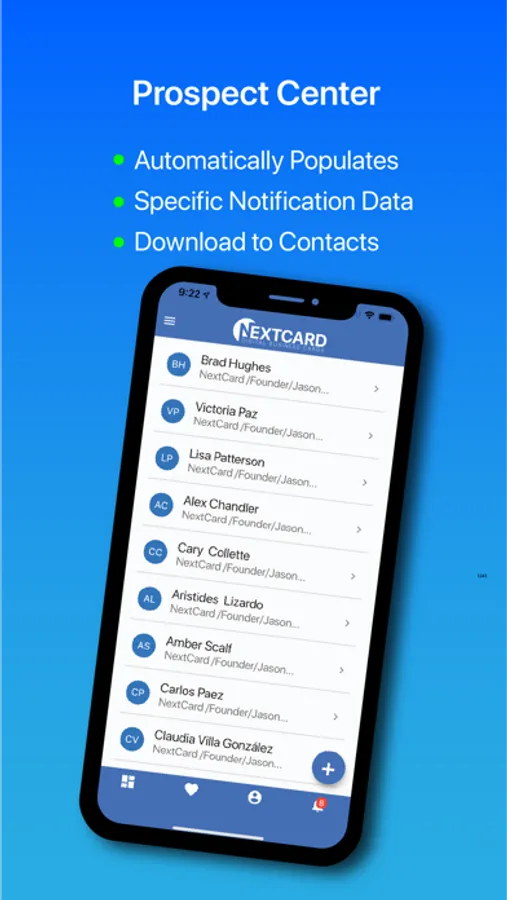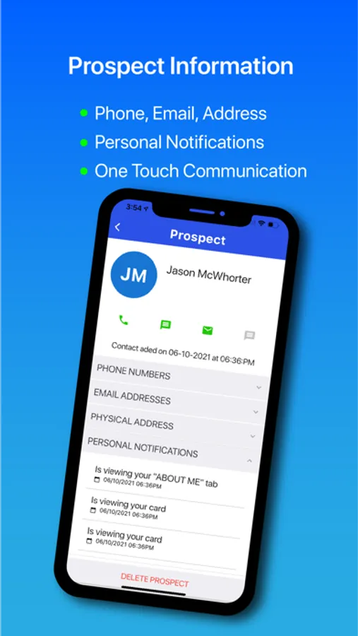 Easily keep track of all your contacts with your personal Prospect Center. The simple, organized management system allows you to capture the name, phone number and email of each person that receives your digital card, and allows you to add additional information for each contact. Designed to help you organize, follow up and build better relationships.
