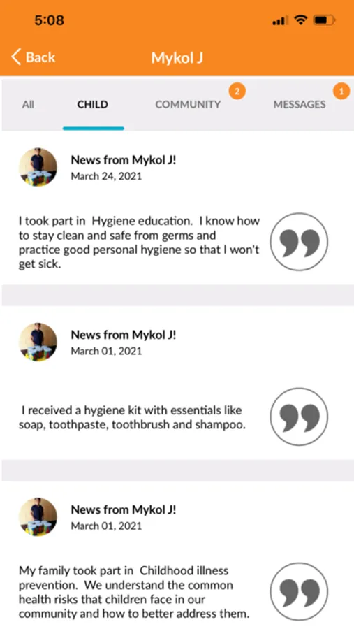 Stay connected wherever you’re at with the new My World Vision App. Discover the life-changing difference you’re making in your sponsored Child’s life and their community. See the latest videos, photos, and letters from your sponsored child. Get more frequent updates on your child’s health, education, and activities. Plus, see the incredible achievements taking place in your child’s community.