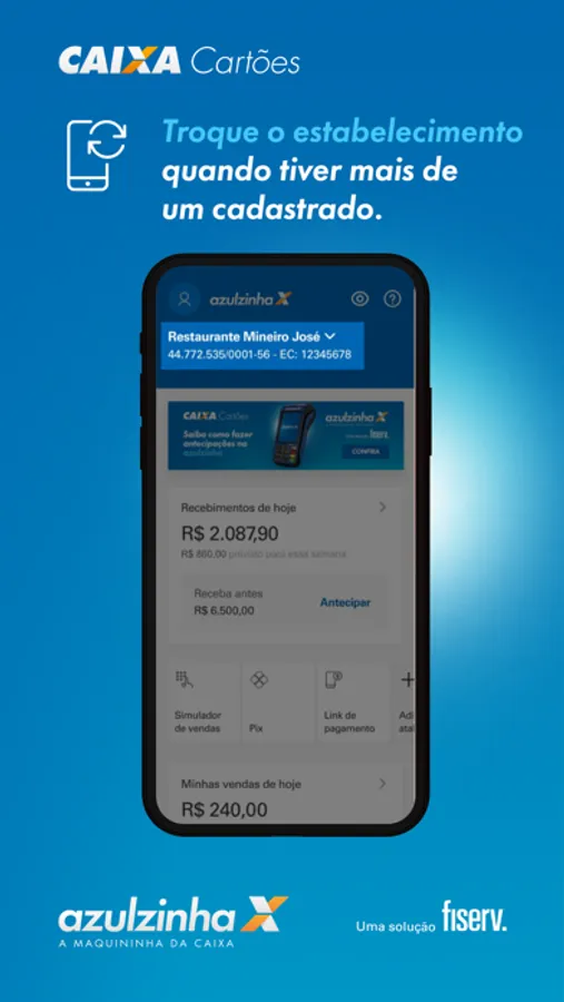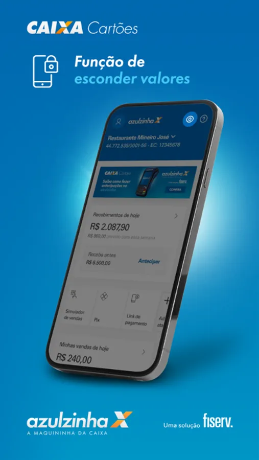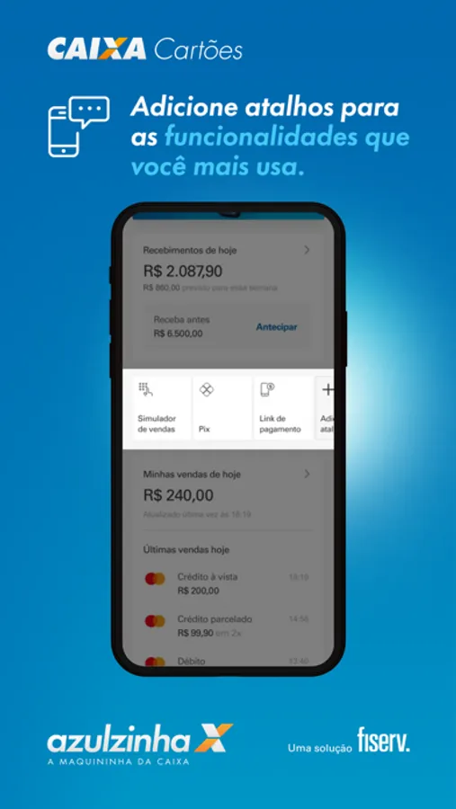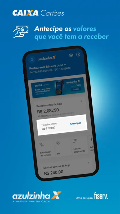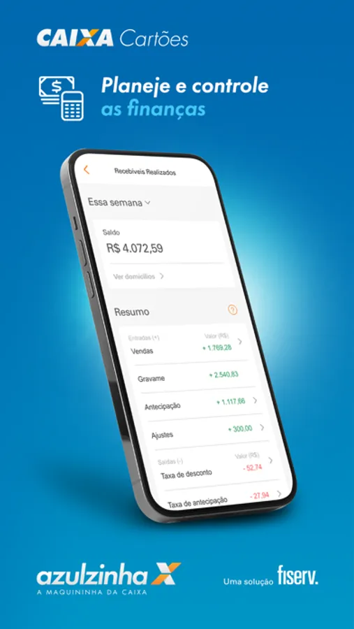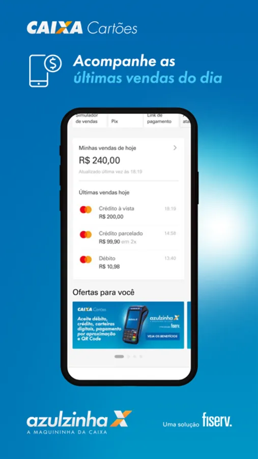 Com o app, você gerencia suas vendas, acompanha pagamentos e recebimentos feitos por cartão de crédito e débito através das vendas realizadas nas máquinas da CAIXA.