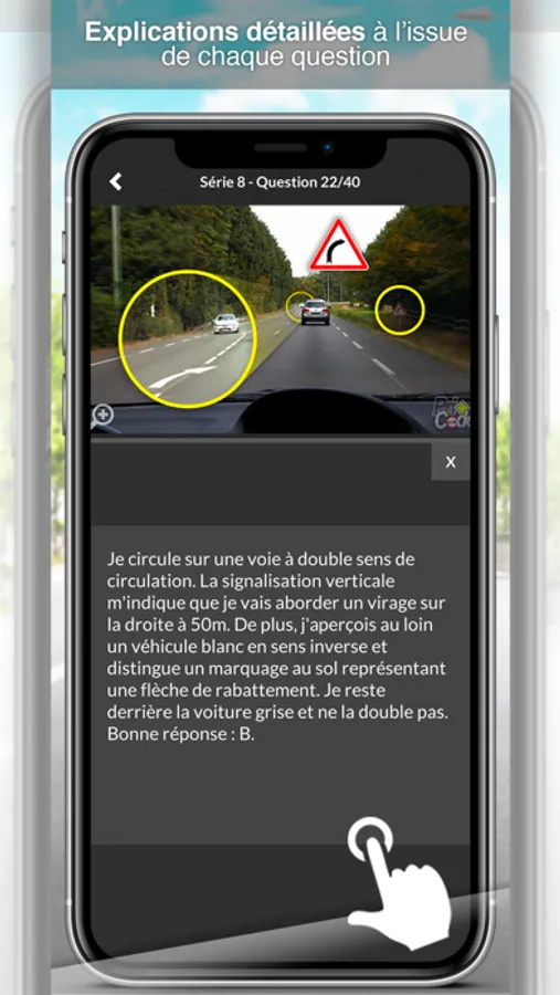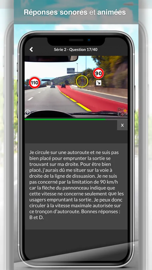○ Examens avec question minutée et correction finale, pour s'exercer dans les conditions de l'épreuve du Code de la route