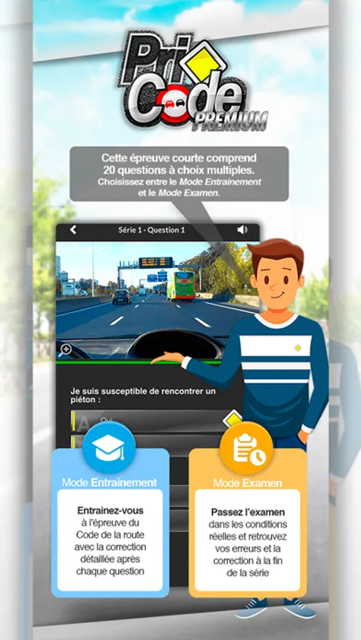 Pour approfondir vos connaissances, l'application PrioCode® propose un mode Premium comprenant des séries composées de :