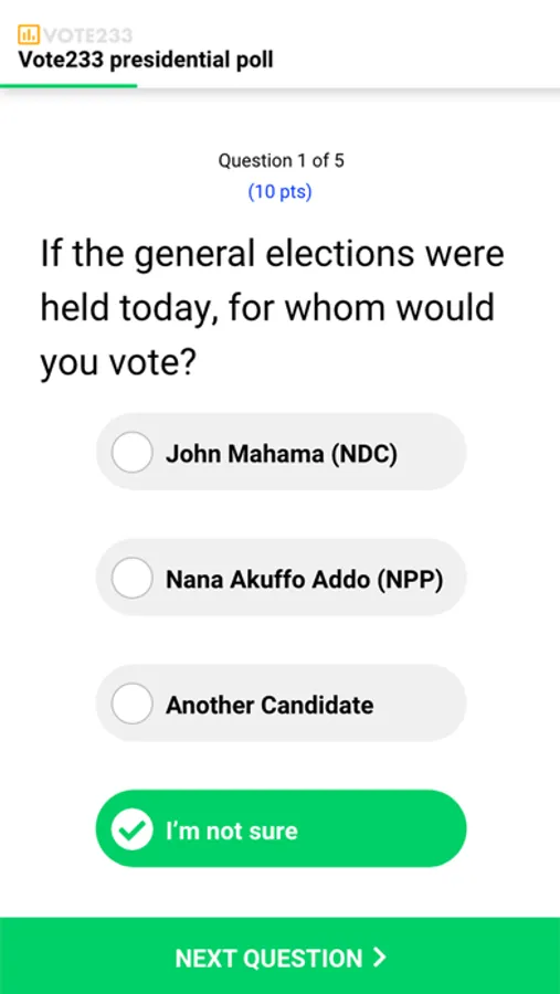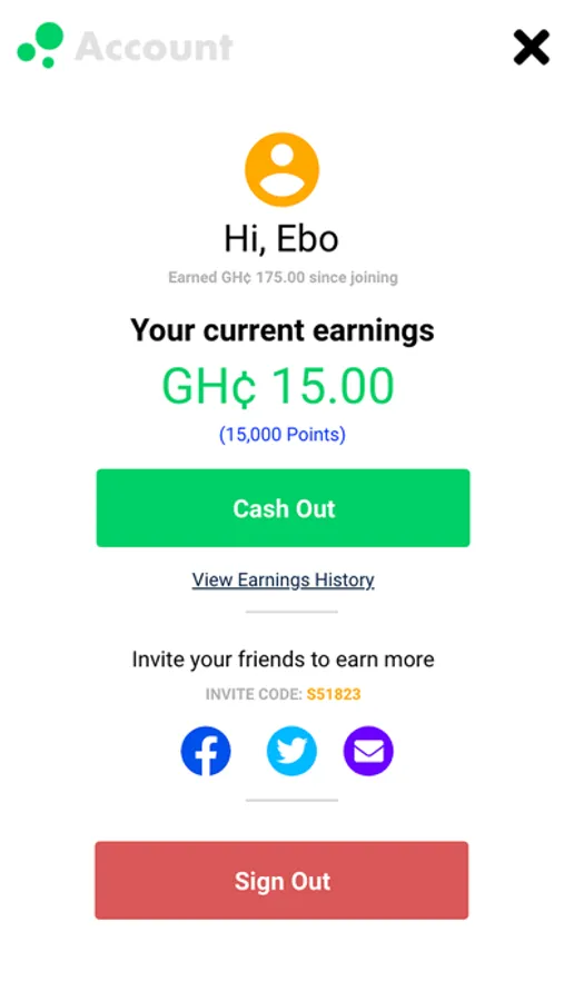 For each poll you fill out, you earn points that accumulate towards an earnings threshold. Once you meet the threshold, you can cash out your earnings and receive them via Mobile Money within 24 hours.