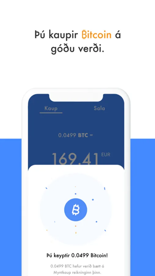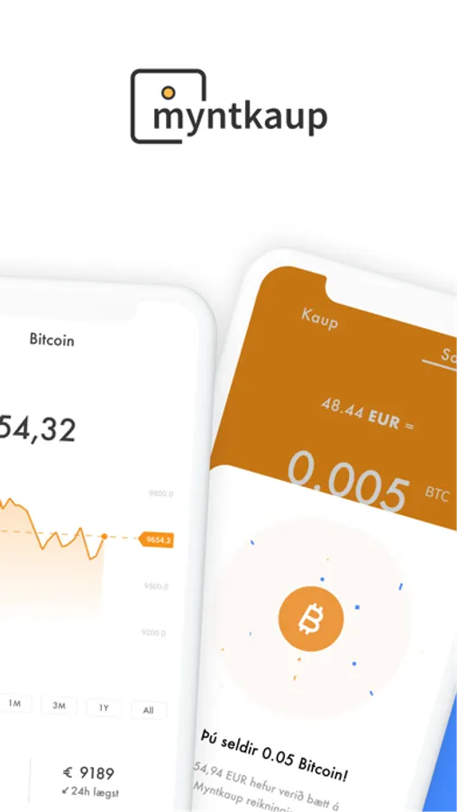 Með Myntkaup appinu getur þú keypt og selt bitcoin og ethereum. Bankainnborganir og -úttektir eru afgreiddar með mjög skjótvirkum hætti alla daga ársins.