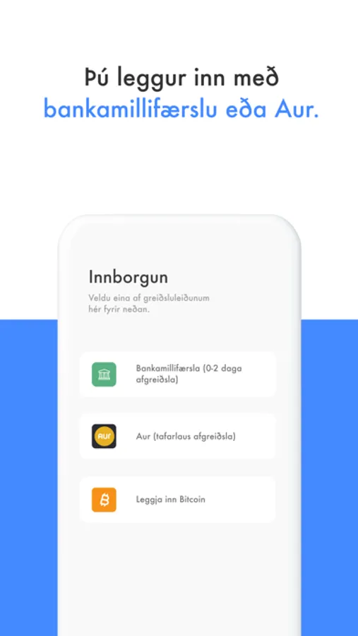 Þú getur m.a. lagt inn pening með bankamillifærslu og Aur appinu. Þá getur þú keypt og selt Bitcoin, tekið út og lagt inn Bitcoin, séð gröf og margt fleira.