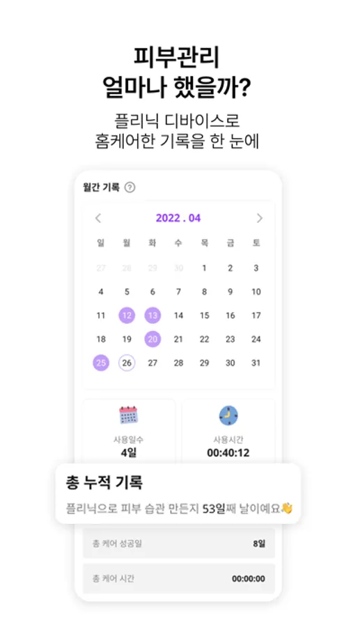 ■ 플리닉 플라즈마 디바이스가 있는 분들을 위한 기록 공간이 새로워졌어요! 한 달에 피부관리를 얼마나 했는지 달력으로 한 눈에!