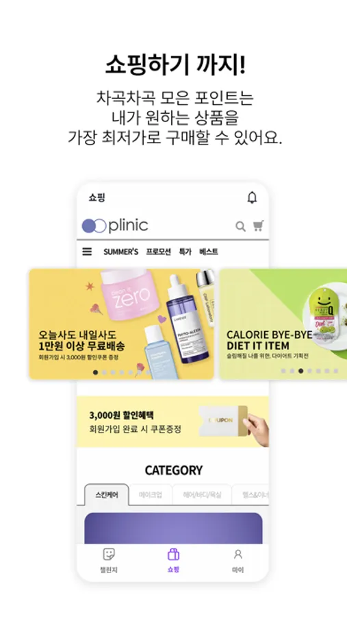 챌린지로 차곡차곡 모은 쇼핑 포인트는 언제든지! 내가 원하는것을! 최저가로 살 수 있어요!