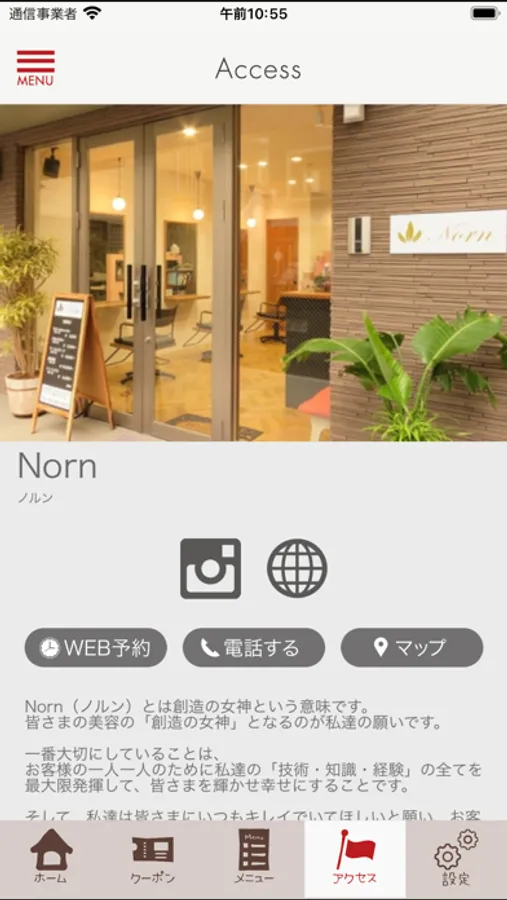 メニューやヘアスタイル、ご希望のお時間帯のチェック・ご予約などが可能です。