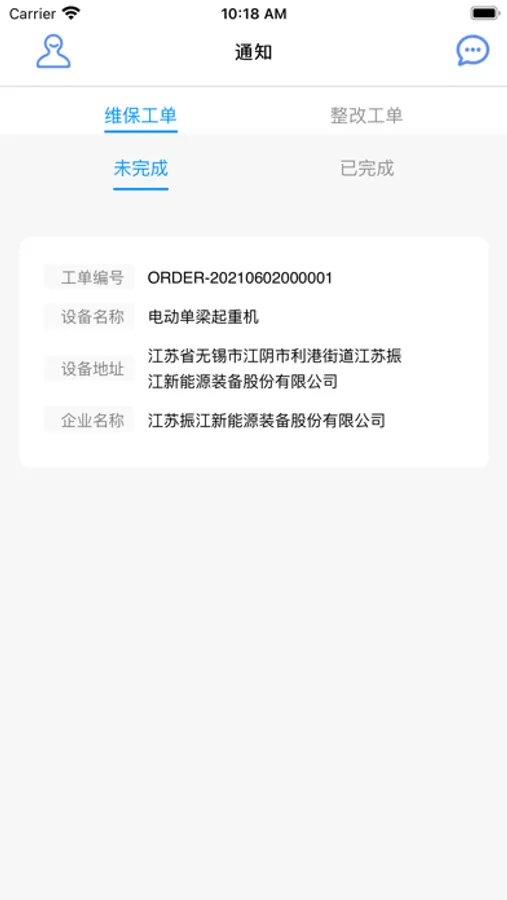一款起重设备维保小程序,主要功能包括维保工单,按指定周期进行维保,对维保过程中异常情况进行专项处理,查看消息等。