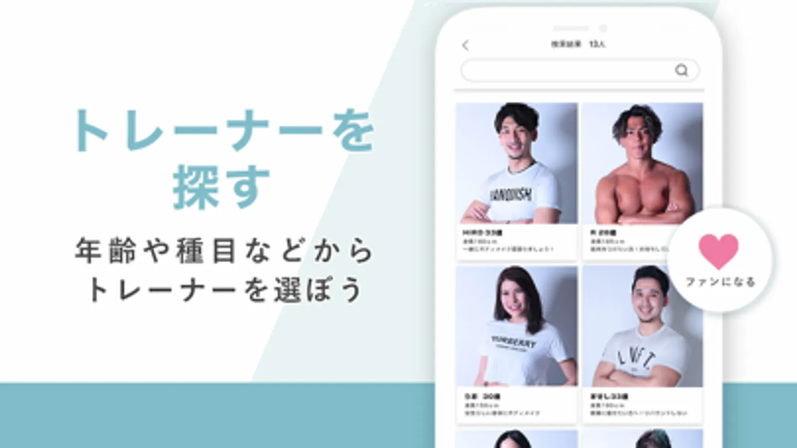 見た目や趣味嗜好などから、好みのトレーナーに出会うことができます。