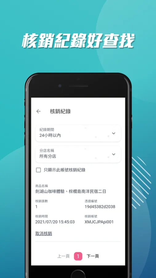 [核銷紀錄查找] 商戶及分店核銷紀錄篩選查詢