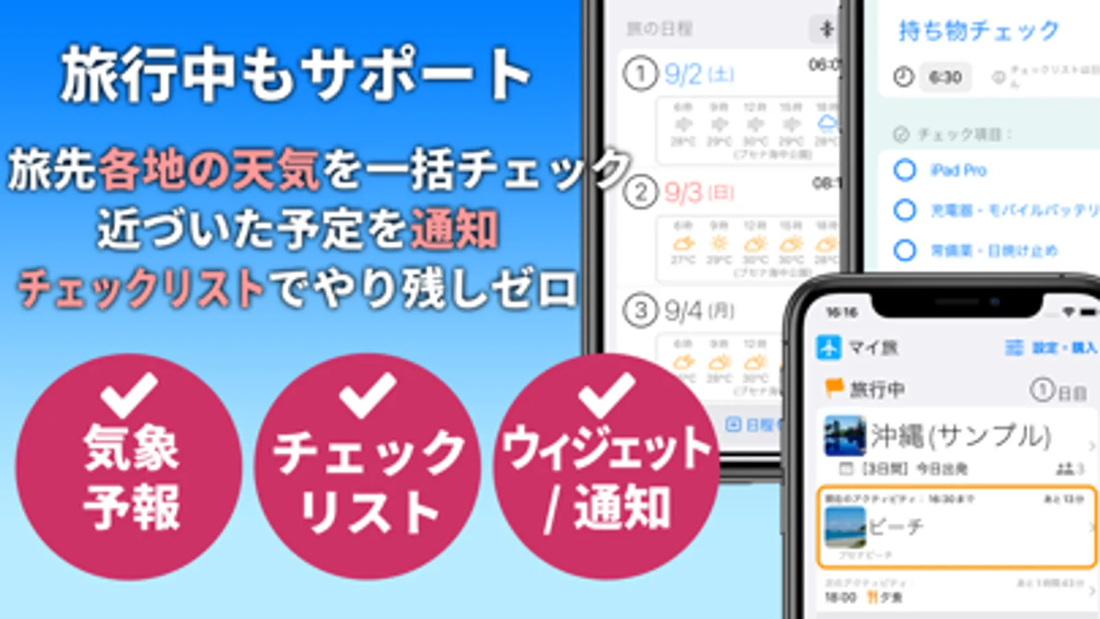 アクティビティごとに写真を撮影・取り込みができ、日程表やウィジェットに反映できます。(※)