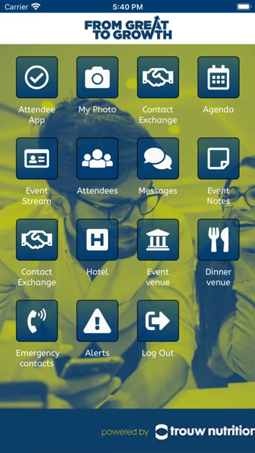The Trouw Nutrition App is a one-stop-shop for all information about Trouw Nutrition events. This App serves as a virtual companion tool throughout Trouw Nutrition conferences and exhibitions with notifications that bring you the latest news, alerts, last minute program changes, program highlights and it also includes opportunities to communicate with other participants.