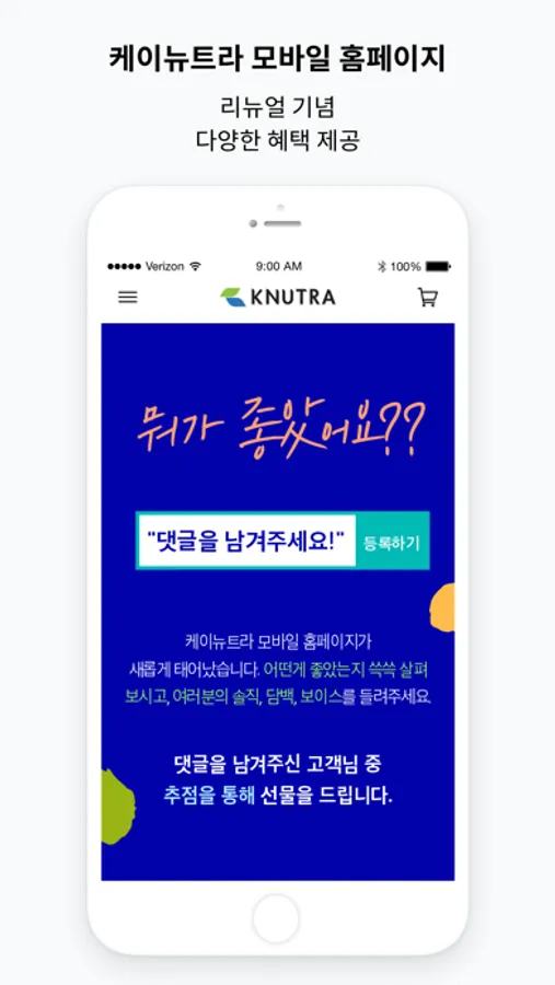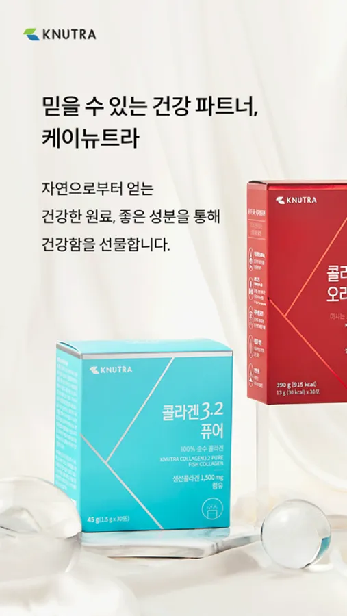 케이뉴트라는 우리의 유전자와 환경을 연구하여 자연으로부터 얻은 건강한 원료, 좋은 성분을 자연친화적인 혁신기술을 통해 순도를 높이고, 흡수력을 높인 제품으로 모든 이에게 건강함을 그대로 전달하고 있습니다.