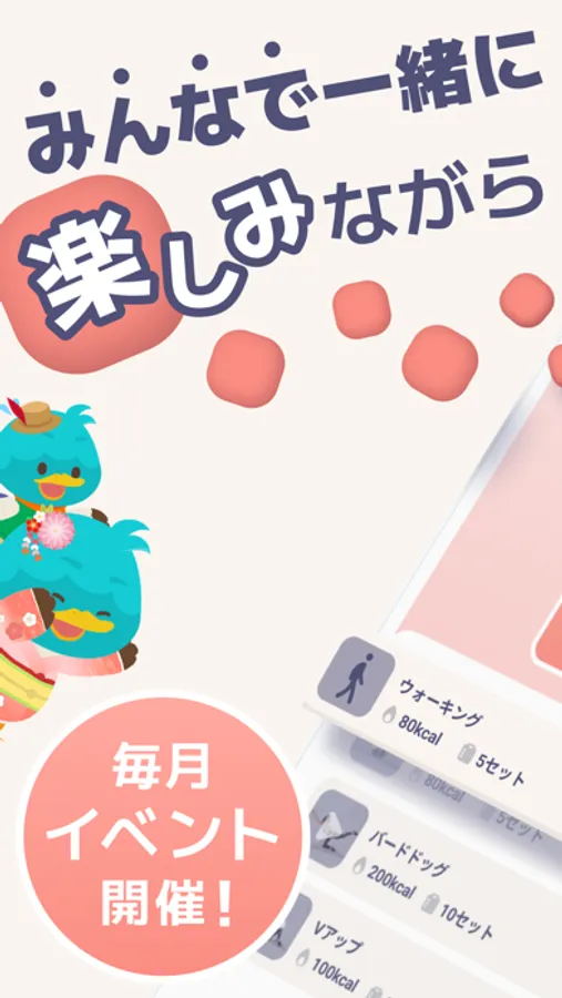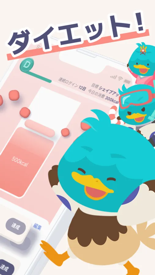 アプリ内に住むカモ「カラダカモ」が、あなたのダイエット記録をサポート!