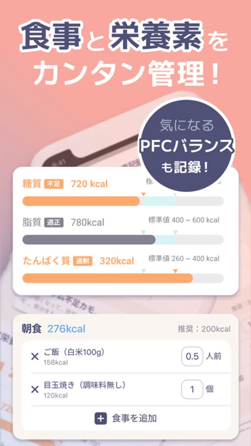 つい偏ったり、やりすぎになってしまう食事と運動、そして体重の管理が、このアプリ1つでまるっとできちゃいます。