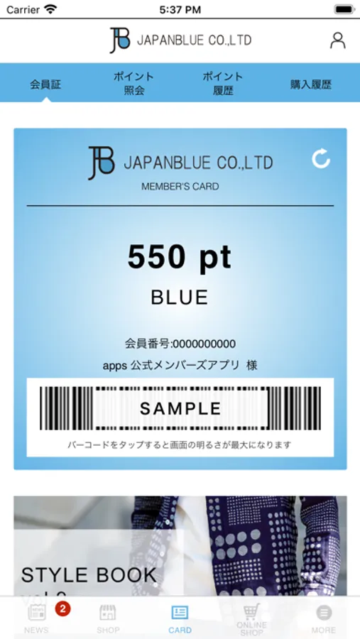 ジャパンブルーの直営店で使用できる会員証や、会員様への特別な情報などをご提供いたします。ぜひアプリをダウンロードしてください。