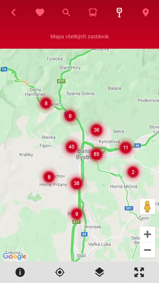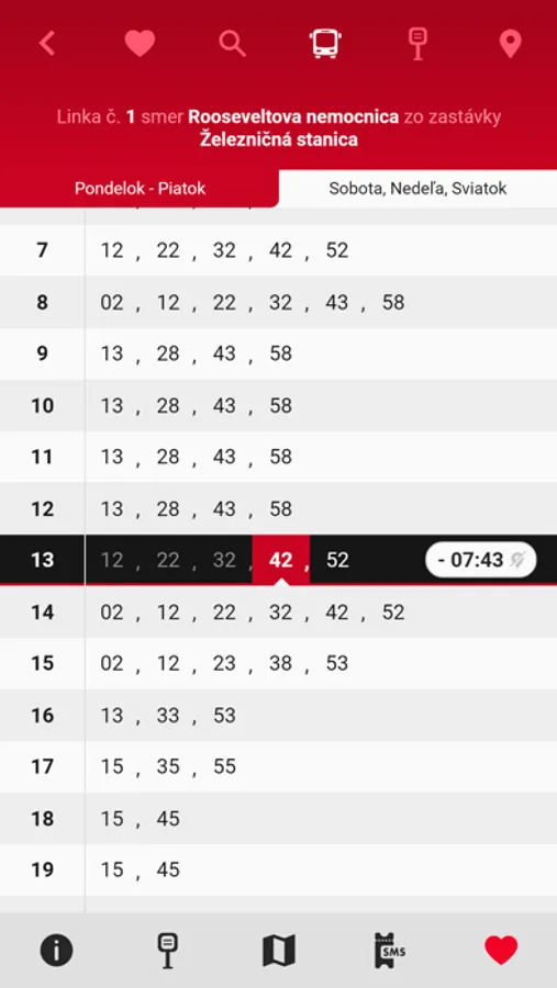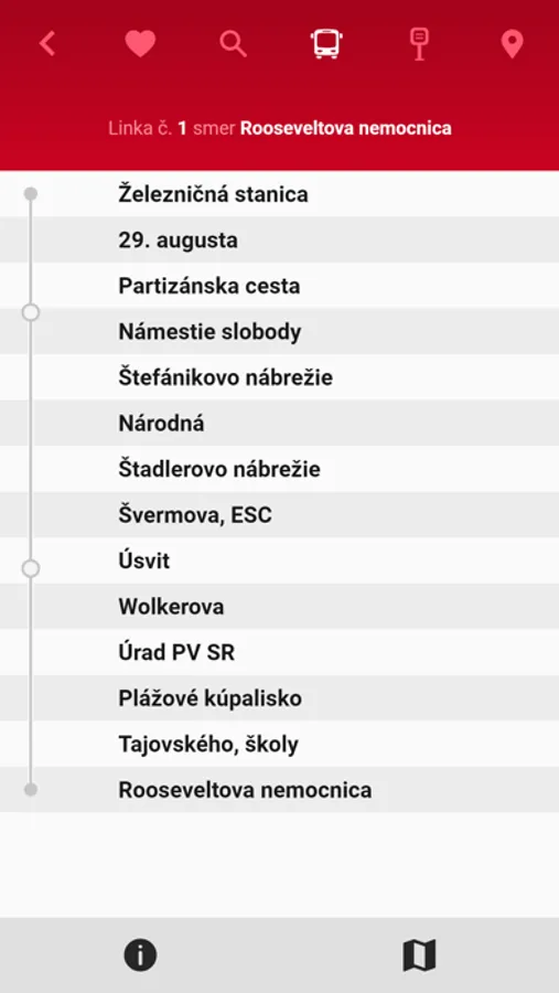 Ulož si obľúbený Bus alebo obľúbenú Zastávku, z ktorej často cestuješ. Odpočet ti ukáže koľko ti ostáva do odchodov obľúbených busov. Ak zmeškáš, nevadí, odpočet začína znova pre nasledujúci spoj. Navyše ak nestíhaš, môžeš si kúpiť aj SMS lístok. O aktuálne cestovné poriadky sa aplikácia postará sama, preto ťa už nezaskočí žiadna zastávka s prelepeným oznamom ;) K dispozícii je aj zobrazenie polohy autobusov/trolejbusov, zastávok a trás liniek na mape. Aplikácia upozorní aj na prípadne výluky a oznamy dopravného podniku.