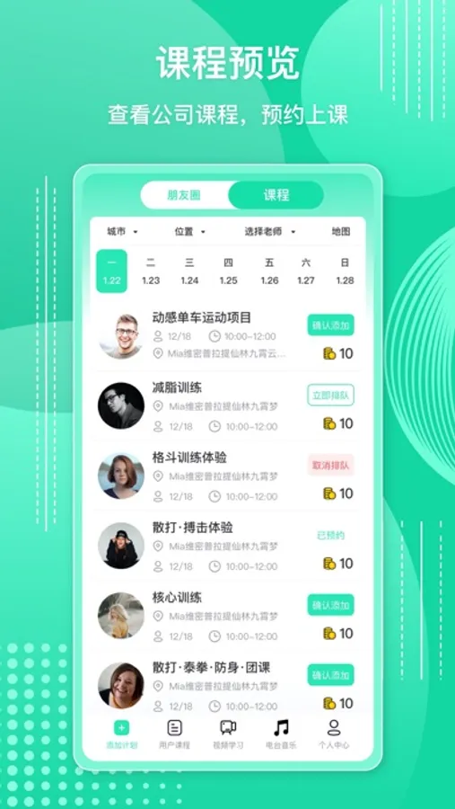 该款应用提供了各类健身课程的预定,可以通过应用内各种丰富多彩的课程选择一感兴趣的包名参加,也可以私人定制一对一专业培训教练,定制化课程会根据你的身体状况为你安排最适合你的专业训练计划!