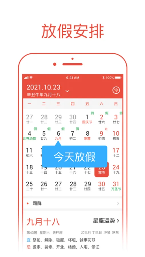 2)节日和节气:国内外传统节日和中国的二十四节气日期标注提醒,还有国家法定节假日上班时间调整,更有详细的科普介绍;