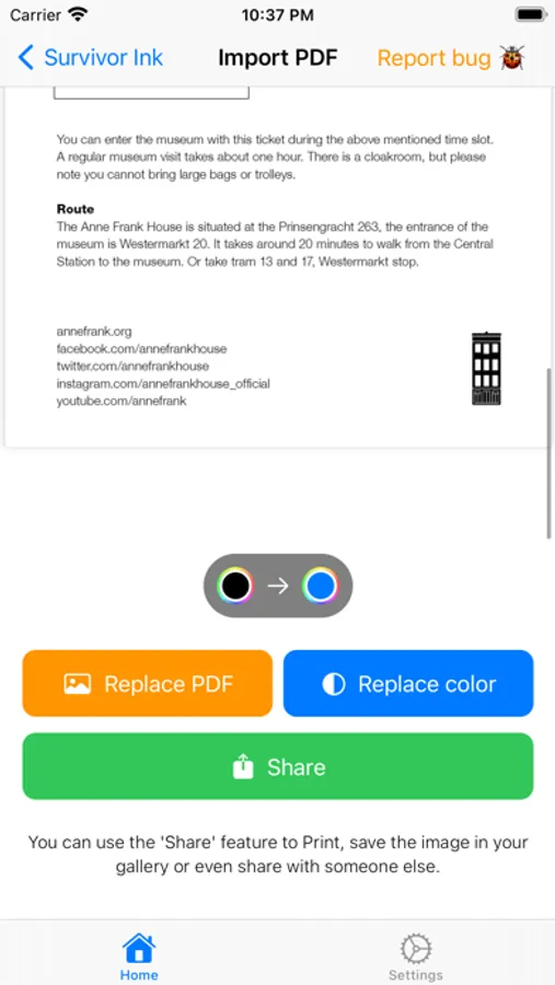 Ink survivor helps you replacing the black ink content in your images by another color, so you can print using the color you have available in your printer.