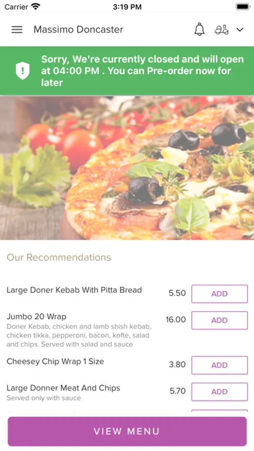 Massimo Doncaster in Doncaster will always be offering great food at affordable prices. Please feel free to browse our new app and place your order online. Remember to check our new online ordering site to get up to date prices and exclusive special offers, limited to our online customers only!