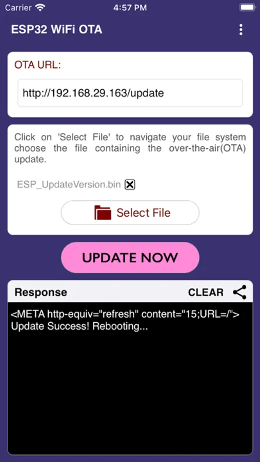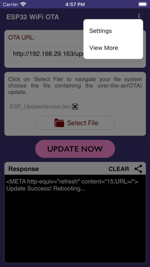 - The App allows you to update/upload new code to your wifi modules like ESP32, ESP8266 using a HTTP method.