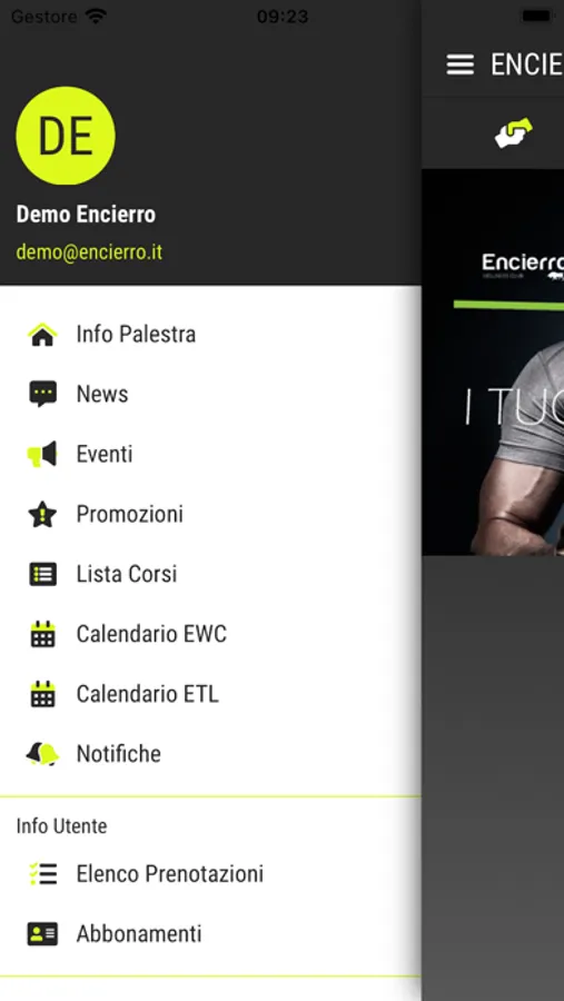 E' possibile, tramite l’app di “Encierro Group”, far gestire in totale autonomia corsi, lezioni e abbonamenti messi a disposizione dalla struttura sportiva.