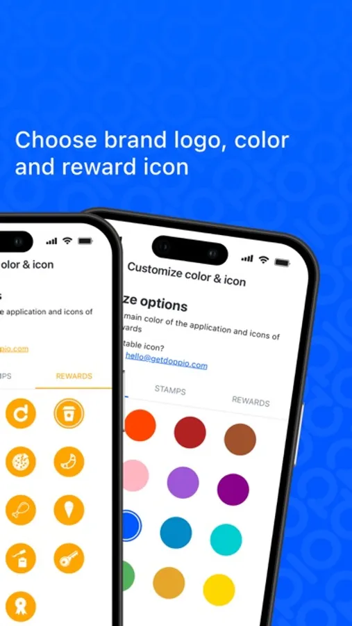 You can easily customize the app's appearance to suit your business needs, including using a color more suitable for your brand identity, choosing a stamp icon, uploading your brand logo, and selecting a reward icon and corresponding name.
