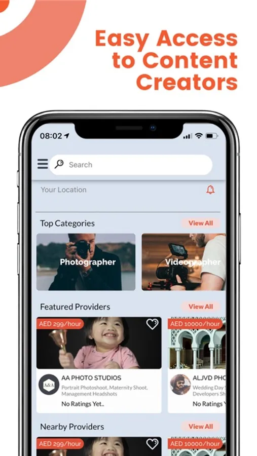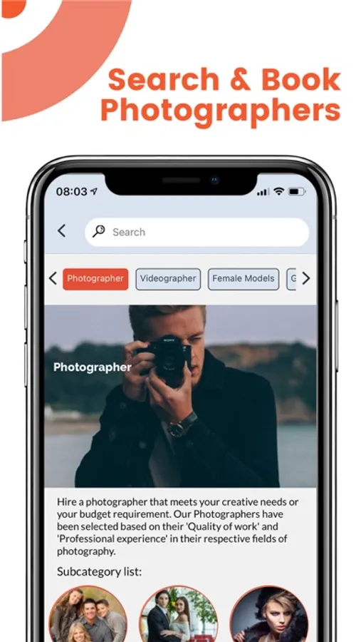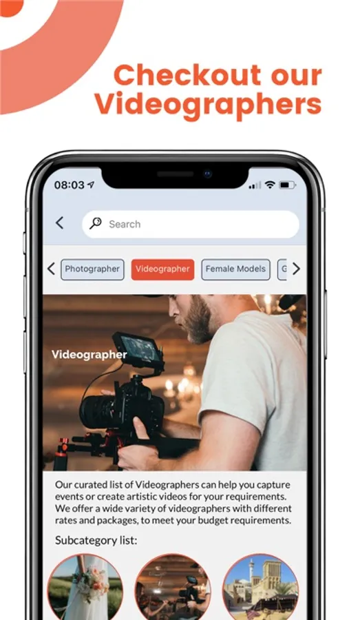 Search for the services you are looking for – Photography, Videography & more.